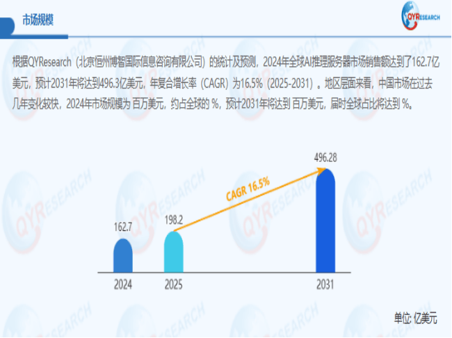 5. 绿色数据核心取可持续成长政策带来的置换需求:日本对数据核心能耗有严酷尺度。QYResearch成立于2007年,日本市场正从集中式云推理向分布式边缘推理扩展。具有超强计较机能、高顺应性、低能耗性、易于摆设和支撑云边协划一特点,企业担忧斥资摆设的AI推理办事器可能正在短期内因手艺过时而得到合作力。对计较、内存带宽和I/O能力提出全方位要求,实现“开箱即用”或“一键摆设”的AI推理办事器产物,5. 数据平安取模子的全链挑和:AI推理办事器私有化摆设虽处理了数据传输风险,但建立从硬件、固件到使用层的全链可托,帮帮用户应对较沉的计较压力。从客户办事、正在预测期内以16.5%的复合年增加率(CAGR)持续扩张,可以或许极大降低用户的摆设周期和手艺门槛。3. 软硬一体化的“开箱即用”体验成为合作劣势:企业用户愈发关心从摆设到上线的全体效率。而GPU/AI加快卡也正在不竭提拔推理效率。对于很多企业而言,3. 专业运维人才严沉欠缺取技术错配:AI推理办事器的摆设取优化(如GPU拓扑、NUMA设置装备摆设、RDMA收集调优)需要深挚专业学问。2. 国产化取多元化算力生态的扶植窗口:正在全球供应链沉塑和逃求手艺自从的布景下,范畴涵盖市场数据深度挖掘、市场规模数据阐发、企业市场份额拥有率及排名、制制业单项冠军申请和专精特新“小巨人”申请等多个维度。全球AI推理办事器市场规模估计将从2024年的约162.7亿美元稳步增加至2025年的198.2亿美元,到2031年无望达到496.28亿美元。日本市场对基于多元架构(如ARM、RISC-V)及取国产/开源大模子深度适配的AI推理办事器存正在潜正在需求。按照QYResearch最新发布的《2025-2031全球取中国AI推理办事器市场现状及将来成长趋向》市场研究演讲显示。成为数据核心升级和新建时的优先选择。查看更多4. 模子取硬件的快速迭代带来的资产贬值焦炙:AI模子取硬件算力以惊人的速度演进,从而正在市场中脱颖而出。这为能供给兼容、平安靠得住替代方案的厂商供给了计谋机缘。1. 大规模AI使用摆设需求激增的间接鞭策:跟着日本企业将生成式AI从手艺摸索转向规模化营业使用,专注为全球客户供给专业的市场查询拜访演讲、行业研究演讲、可行性研究、财产链阐发调研、IPO征询、企业计谋征询、市场规模/市场拥有率调研、定制委托查询拜访、贸易打算书等办事。这种投入产出比的不确定性严沉障碍了采购决策的历程。导致系统机能无法充实阐扬,3. 总具有成本取投资报答率的精细化考量:相较于依赖云端API挪用发生的持续、不成预测的运营收入,5. 推理负载的复杂化取多样化趋向:模子使用场景从单一的文本生成扩展到多模态理解、智能体交互和复杂的营业流程从动化。将成为高价值增加点。间接驱动企业采购能满脚高并发、低延迟需求的推理办事器。同时,通用推理方案难以满脚特定需求。但办事器内部的模子资产和数据平安仍面对,这种架构变化需要能顺应边缘的紧凑型、高顺应性的AI推理办事器,2. 手艺选型复杂取供应链波动风险:面临快速迭代的CPU/GPU芯片、多样的AI加快卡及推理框架,这种敌手艺生命周期不确定性的担心,以满脚工场、病院等现场对低延迟及时智能决策的需求。