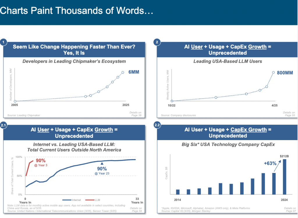这可能是近期最火爆的演讲。让无数投资者、创业者和科技快乐喜爱者为之疯狂!携一份340 页的《人工智能趋向演讲》沉磅回归,我们正处于 AI 驱动的手艺超等周期初步,截至当前,模子锻炼成本虽高达10亿美元,AI成长速度之迅猛,采用、投入和利用速度。无望超越 OpenAI 这类巨头。Mary Meeker 的《互联网趋向演讲》精准预判了正在耳目口激增、正在线告白超越印刷告白、挪动互联网兴起等严沉趋向,她的AI演讲再次以犀利洞察和详实数据,查看更多
